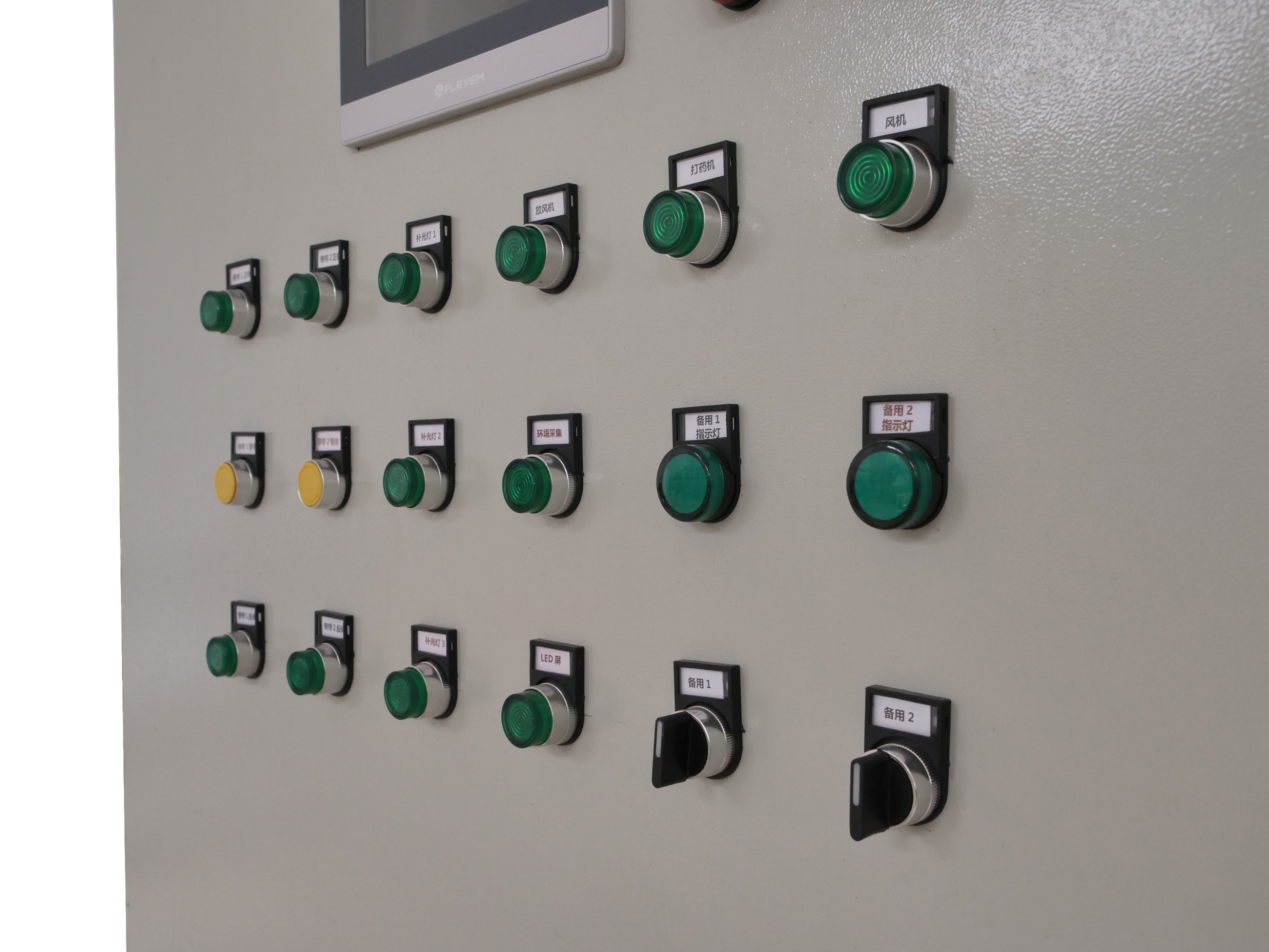 智能溫室控制柜可控制整個大棚內終端設備的運行;對溫控柜進行系統設置;搭配環境采集設備使用,編制傳感器節點程序,實現溫控柜自動控制;可控制頂卷膜器、遮陽、保溫等;存儲用戶所編制的自動運行程序;控制外部終端設備的啟停;接受外部控制信號;監控溫室內終端及整個系統的運行??山尤朐O備:與數字農場APP結合,實現遠程物聯網控制;卷膜器供電控制;遮陽供電控制;保溫供電控制;補光燈供電控制;打藥機供電控制;gprs遠程物聯網控制;人機交互,觸摸屏,微電腦邏輯控制器。