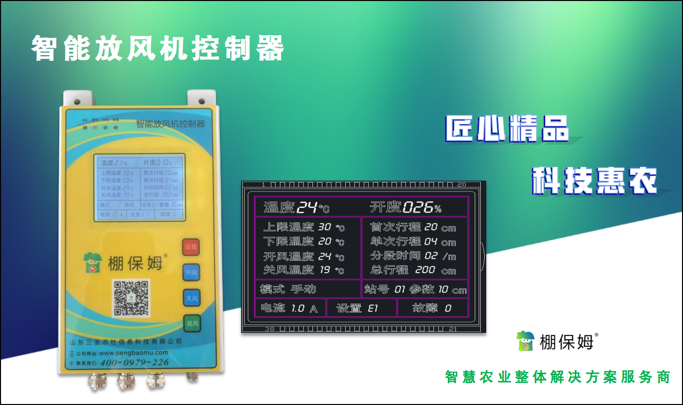 棚保姆智能放風機控制器自主研發主控板、自主研發程序、定制外殼設計,采用進口溫濕度傳感器,配置防水接頭和4G物聯網遠程模塊,可設置分段運行時間和間隔運行時間,合理控制室內溫度;簡單易操作,支持4G物聯網遠程控制,智能放風機控制器主機與從機聯動,只需設置主機參數即可實現主機、從機同步;操作方式多樣,既可以單獨手動控制從機,也可以通過控制主機實現整機聯動控制,同時具備手動控制和自動控制兩種控制模式,操作簡單,實用性強;設備具有一鍵晨風功能,晨間放風只需操作主機,從機可同步運行;自帶保護功能,突發緊急情況下,可由主機全局控制,一鍵關風,安全可靠。